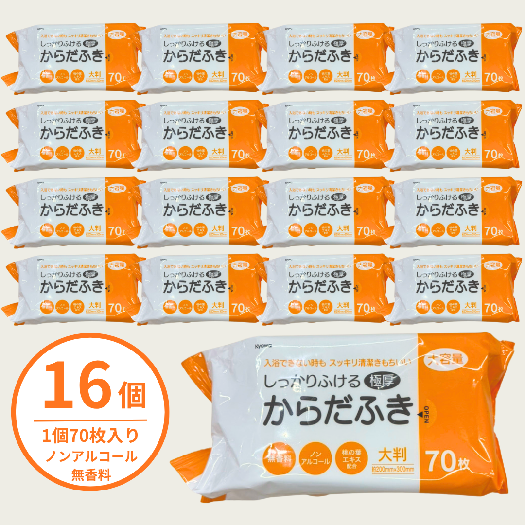 <業務用>大容量:極厚からだふき大判70枚(16個入り)